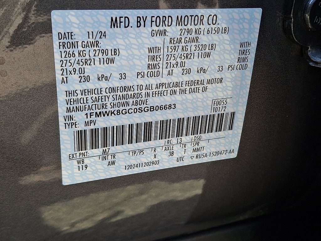Ford Gold Certified Certified, 4WD, 10 Speakers, 3.58 Non-Limited Slip Rear Axle, 3rd row seats: bench, 4-Wheel Disc Brakes, ABS brakes, Air Conditioning, Alloy wheels, AM/FM radio: SiriusXM with 360L, Apple CarPlay/Android Auto, Auto High-beam Headlights, Auto-dimming door mirrors, Auto-dimming Rear-View mirror, Automatic temperature control, Brake assist, Bumpers: body-color, Compass, Delay-off headlights, Driver door bin, Driver vanity mirror, Dual front impact airbags, Dual front side impact airbags, Electronic Stability Control, Emergency communication system: 911 Assist, Equipment Group 400A Standard Package, Exterior Parking Camera Rear, Four wheel independent suspension, Front anti-roll bar, Front Bucket Seats, Front Center Armrest, Front dual zone A/C, Front fog lights, Front License Plate Bracket, Front reading lights, Fully automatic headlights, Garage door transmitter, Heated door mirrors, Heated front seats, Heated rear seats, Heated steering wheel, Heated/Ventilated Miko Sport Captain's Chairs, Illuminated entry, Internet access capable: FordPass Connect 5G, Knee airbag, Leather steering wheel, Low tire pressure warning, Memory seat, Navigation System, Occupant sensing airbag, Outside temperature display, Overhead airbag, Overhead console, Panic alarm, Passenger door bin, Passenger vanity mirror, Power door mirrors, Power driver seat, Power Liftgate, Power passenger seat, Power steering, Power windows, Radio: B&O Sound System by Bang & Olufsen, Rain sensing wipers, Rear air conditioning, Rear anti-roll bar, Rear reading lights, Rear window defroster, Rear window wiper, Remote keyless entry, Security system, Speed control, Speed-sensing steering, Speed-Sensitive Wipers, Split folding rear seat, Spoiler, Sport steering wheel, Steering wheel mounted audio controls, Tachometer, Telescoping steering wheel, Tilt steering wheel, Traction control, Trip computer, Turn signal indicator mirrors, Variably intermittent wipers, Ventilated front seats, Wheels: 21" Magnetite-Painted Aluminum, 4WD.